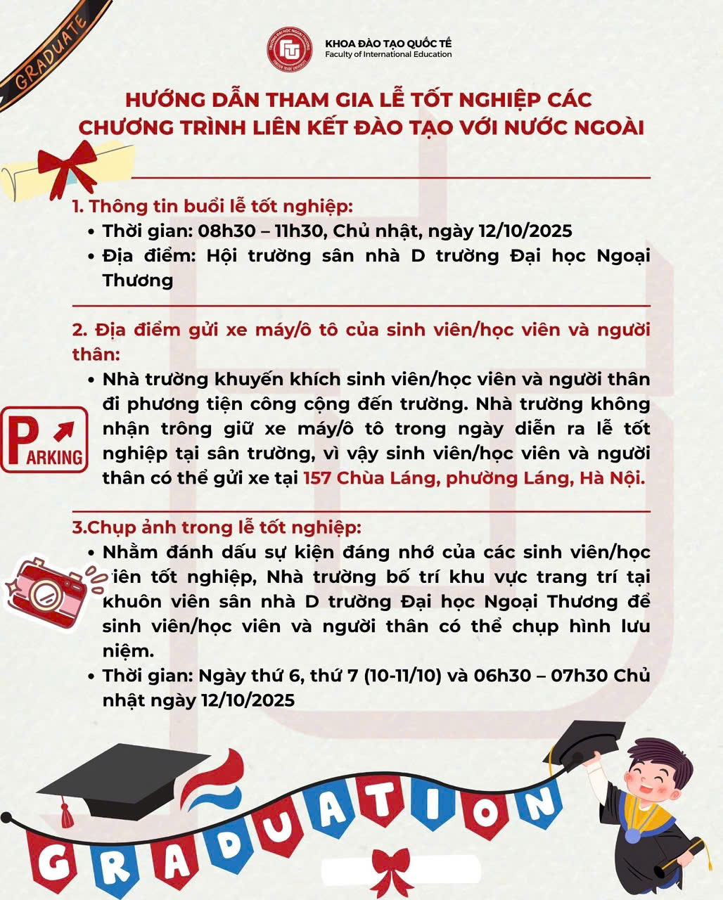 Trước thềm ngày lễ tốt nghiệp – cột mốc thật đáng nhớ, Khoa ĐTQT gửi đến các em một vài lưu ý nhỏ để chuẩn bị thật chu đáo nhé.