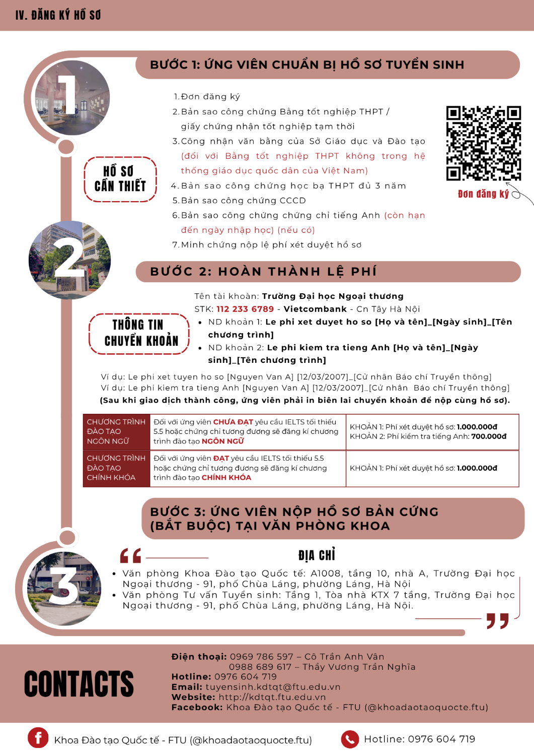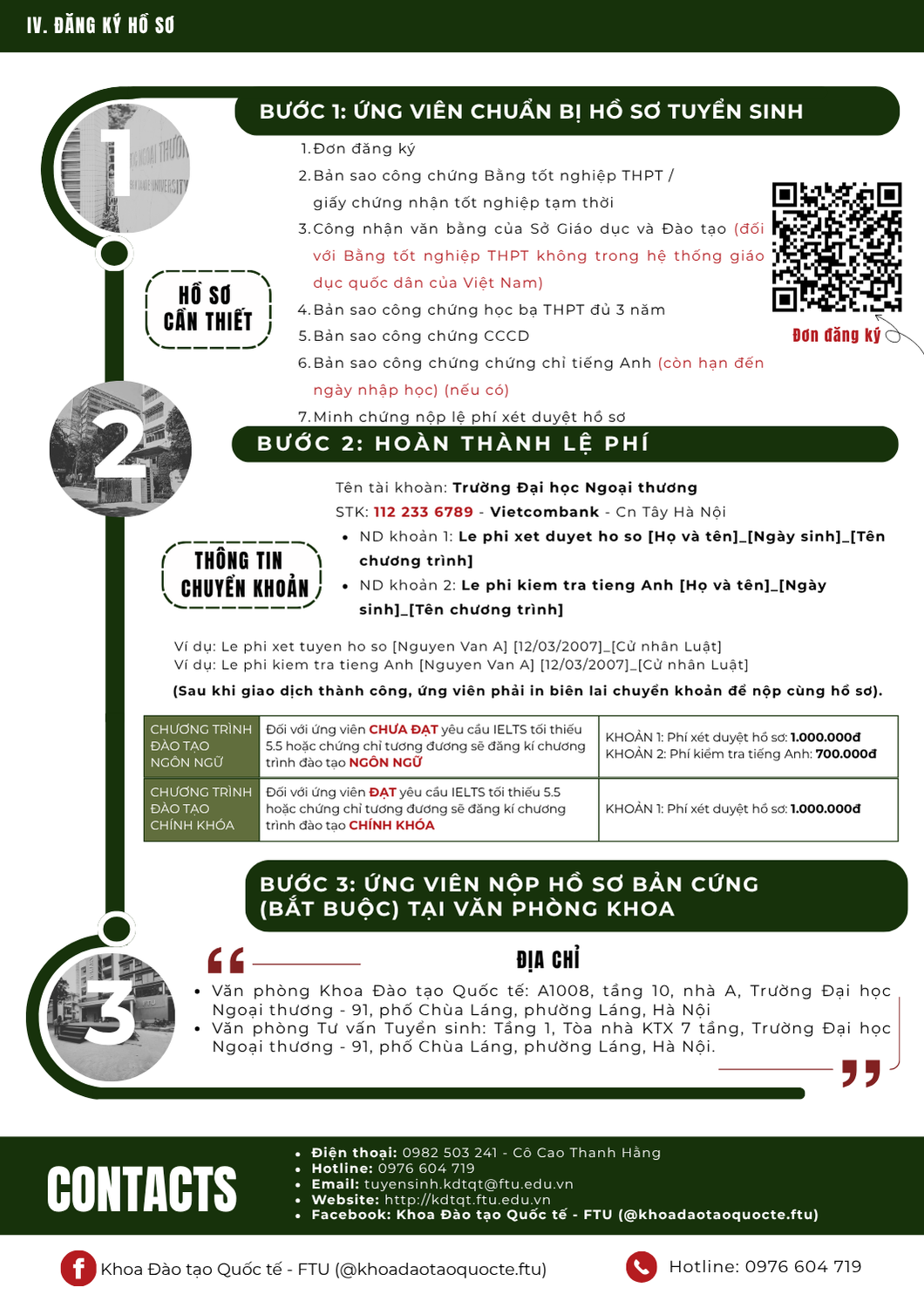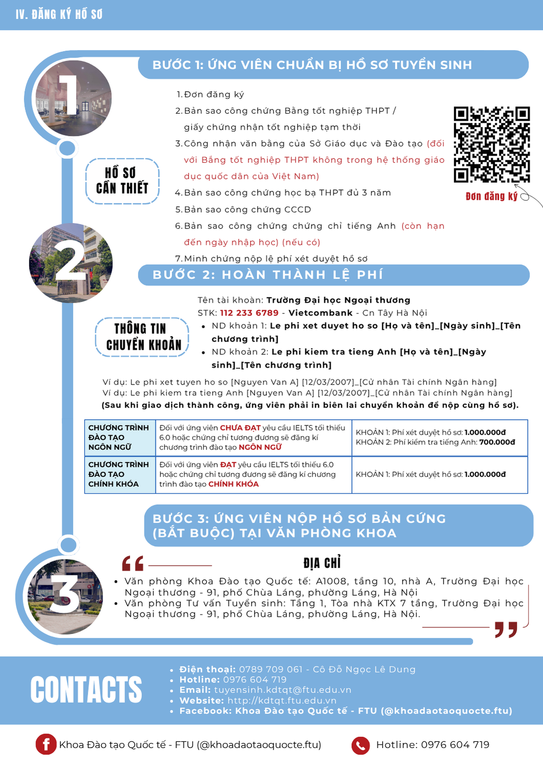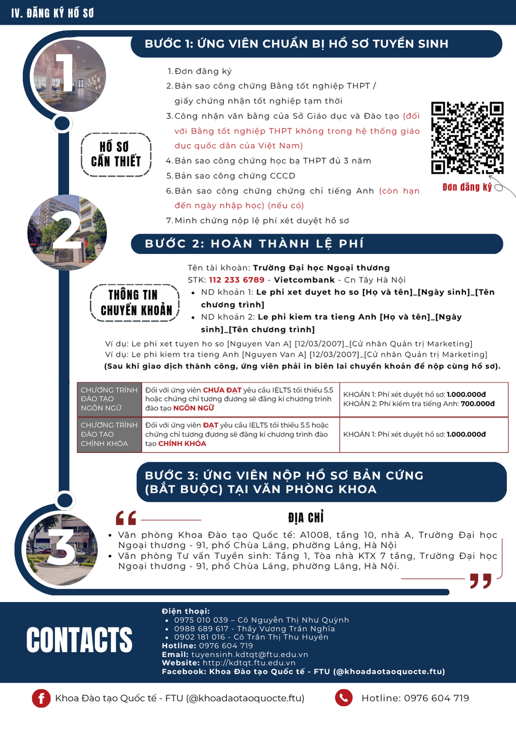 Văn phòng tuyển sinh 3: Ban Đào tạo Quốc tế - Phòng A007, tầng trệt nhà A - Trường ĐH Ngoại thương (cơ sở II tại Tp Hồ Chí Minh)