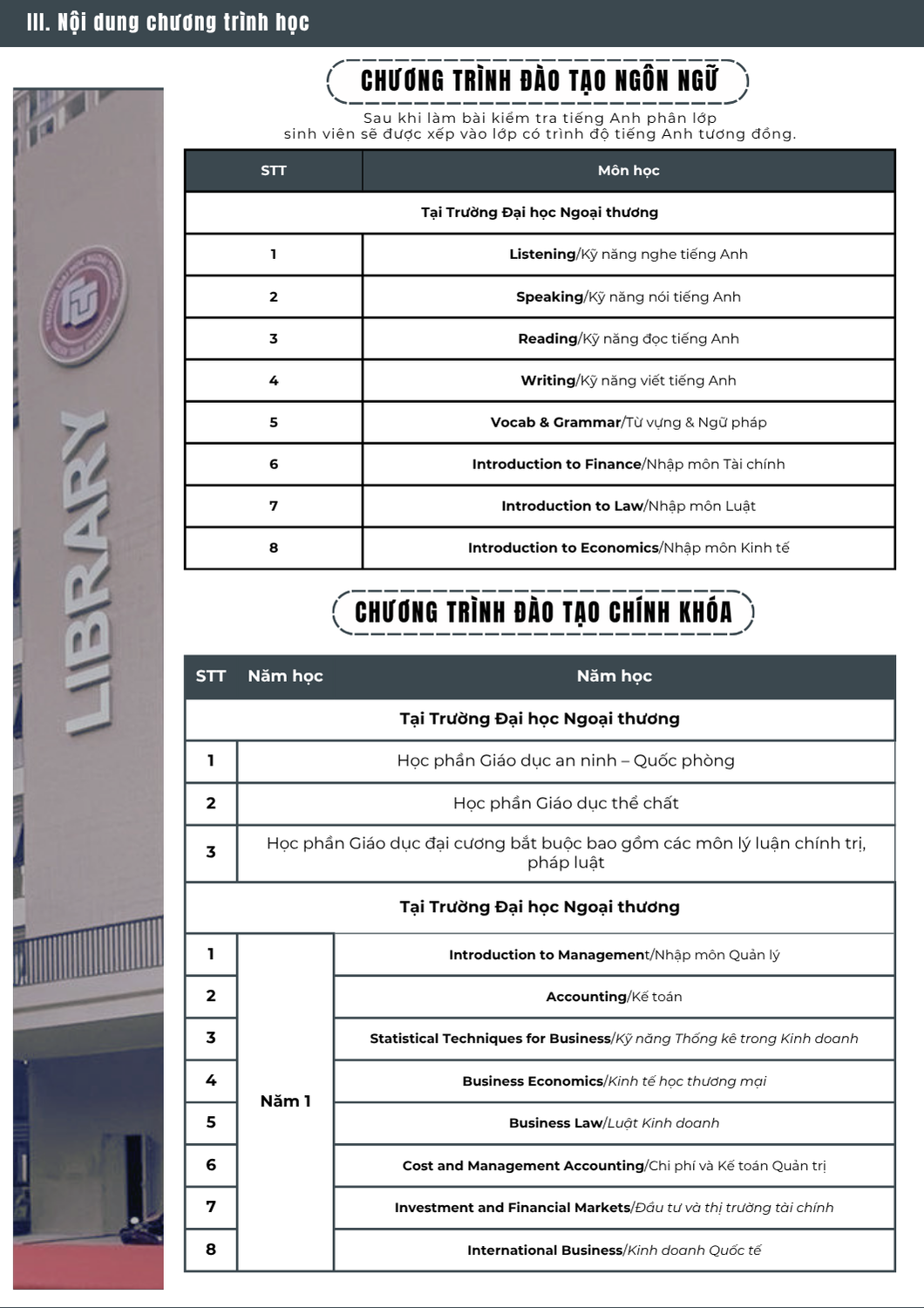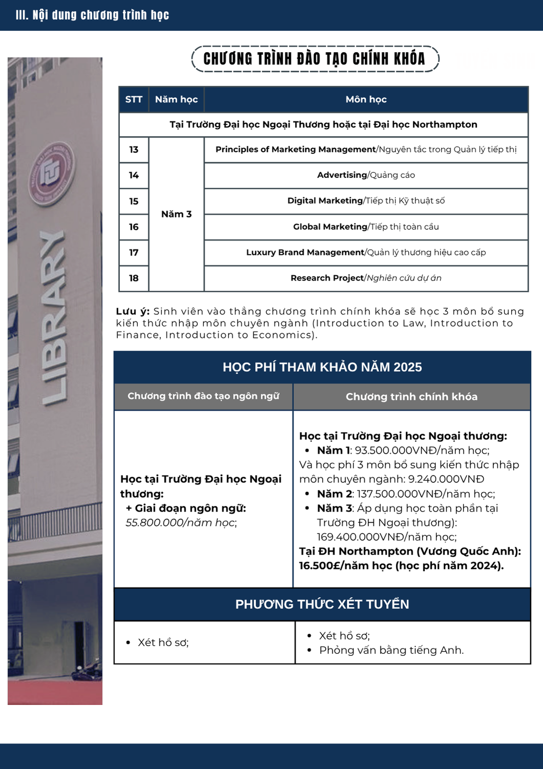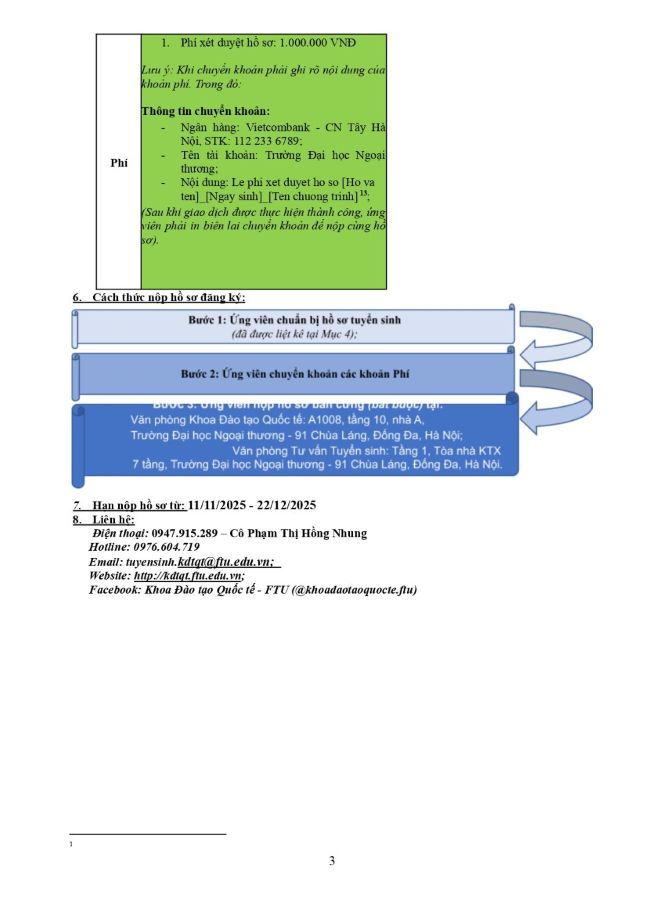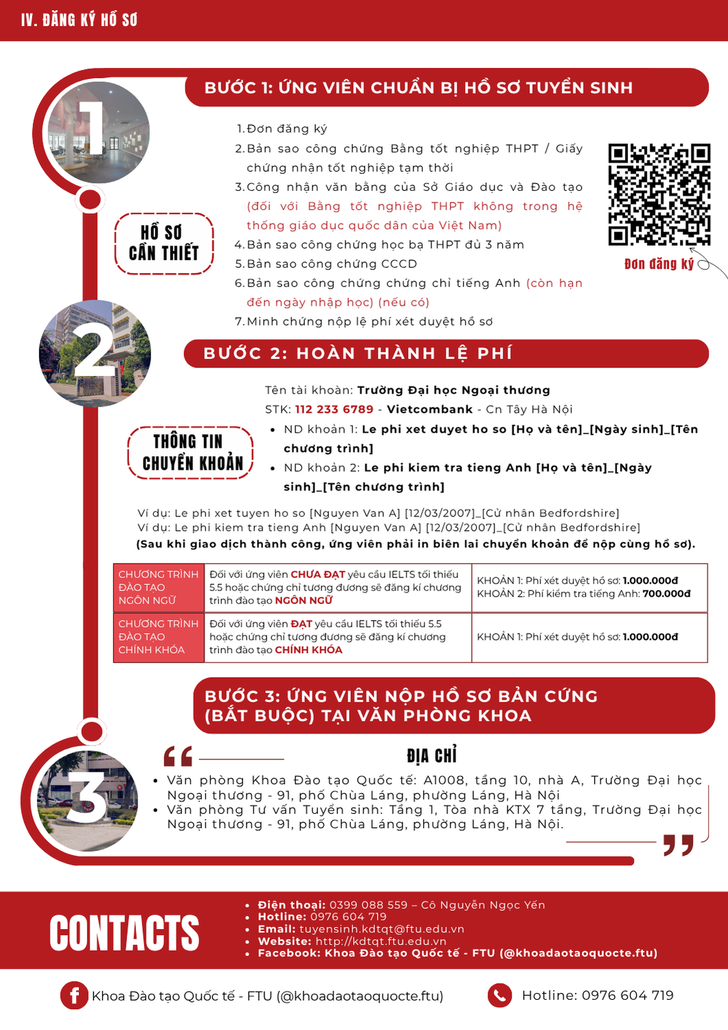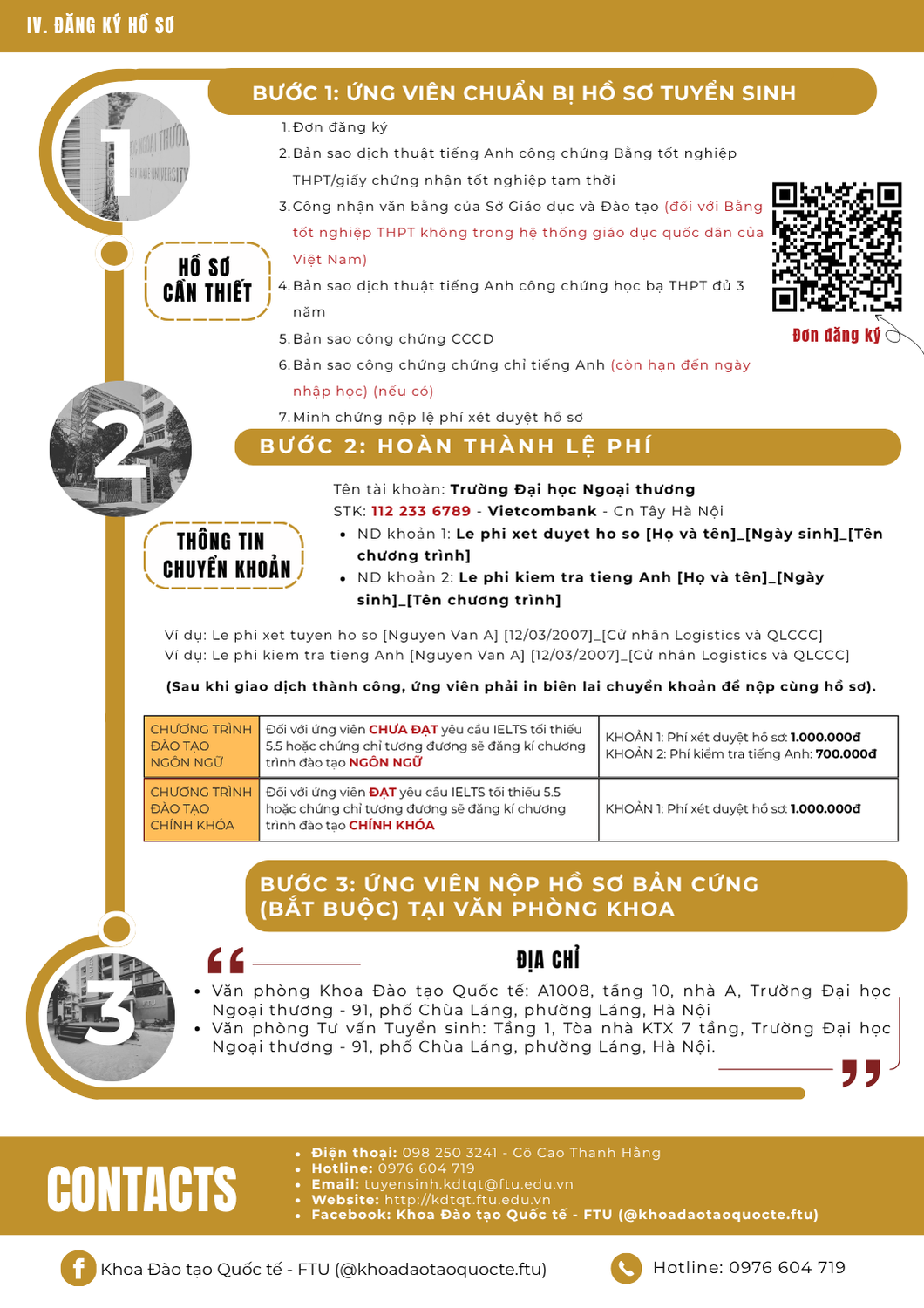 Văn phòng tuyển sinh 3: Ban Đào tạo Quốc tế - Phòng A007, tầng trệt nhà A - Trường ĐH Ngoại thương (cơ sở II tại Tp Hồ Chí Minh)