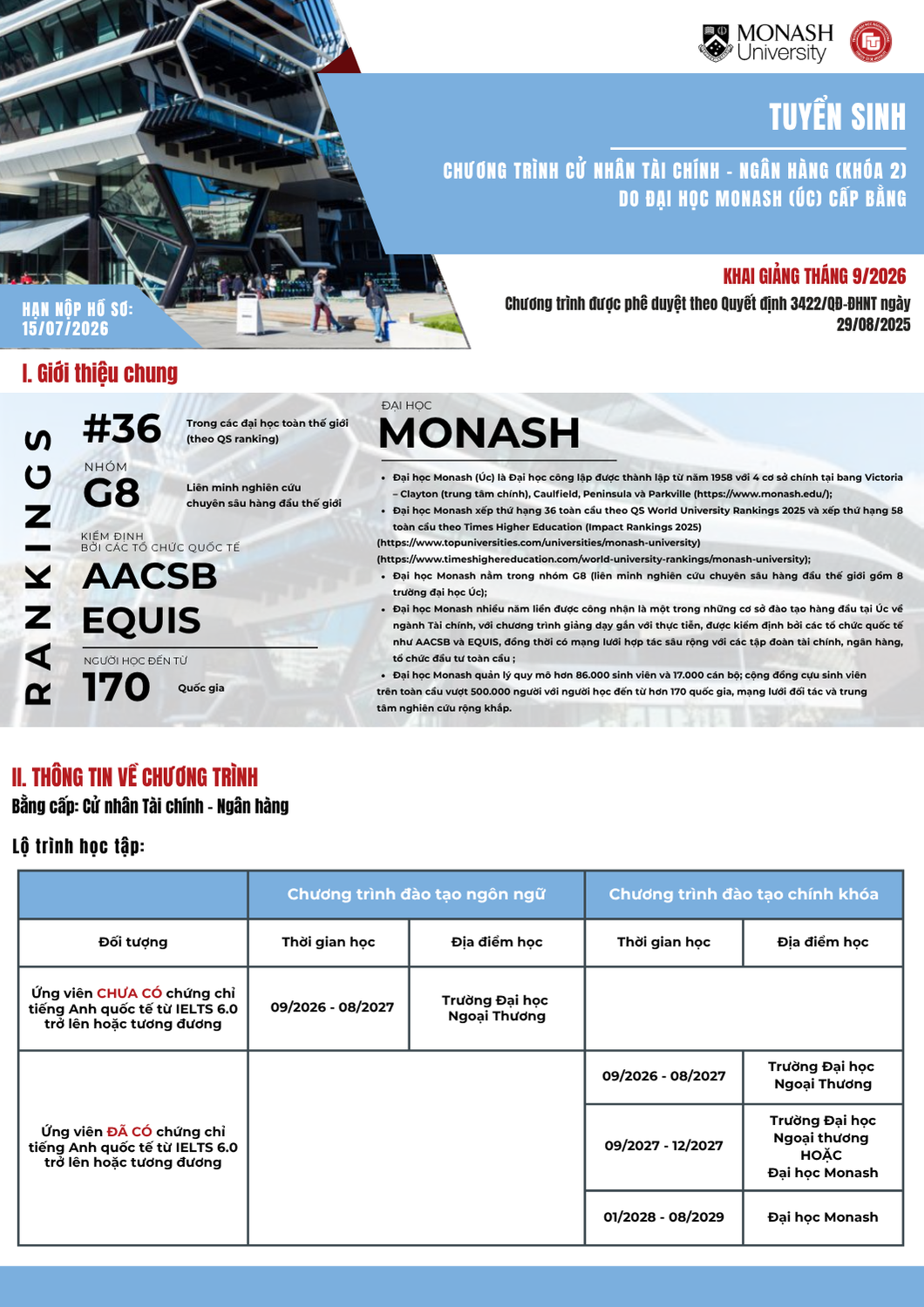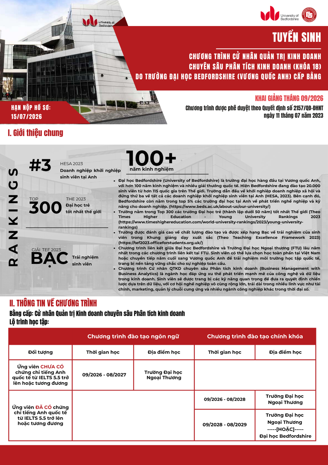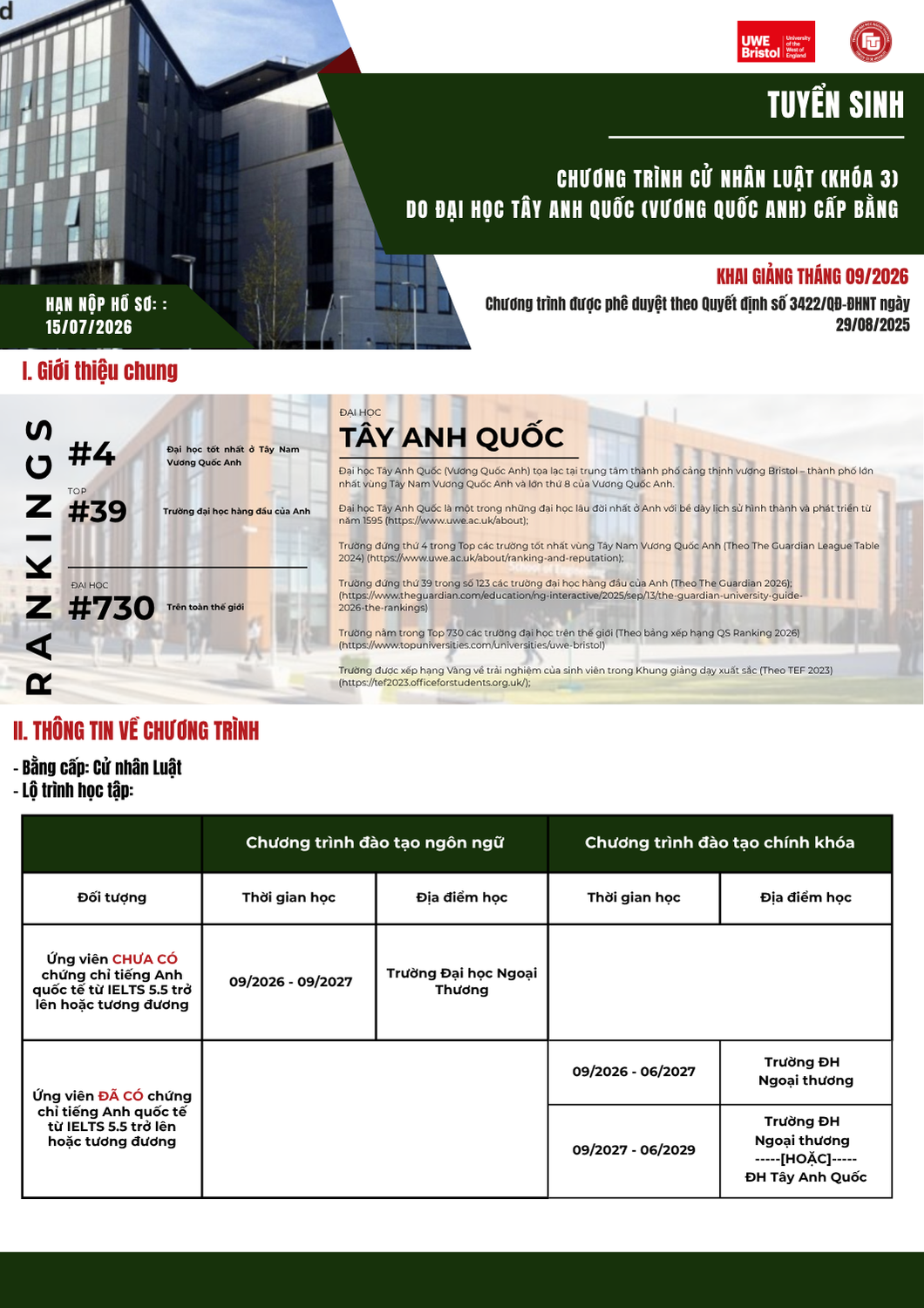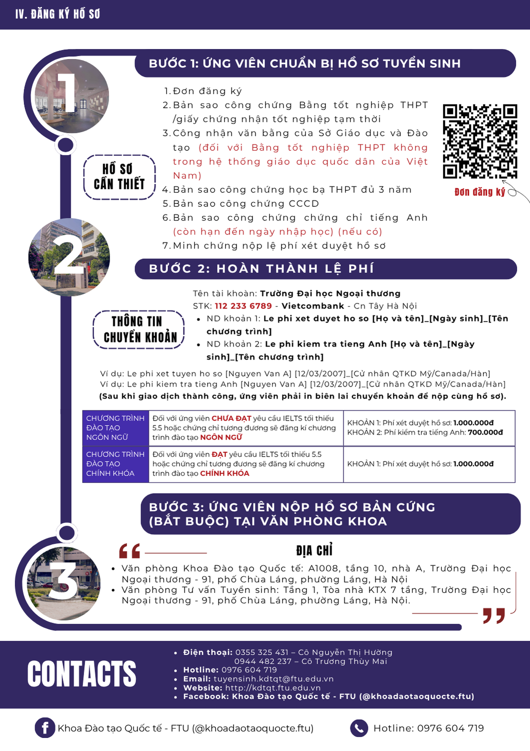 Văn phòng tuyển sinh 3: Ban Đào tạo Quốc tế - Phòng A007, tầng trệt nhà A - Trường ĐH Ngoại thương (cơ sở II tại Tp Hồ Chí Minh)