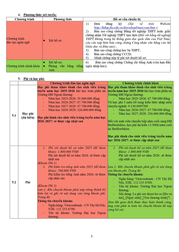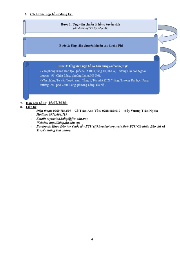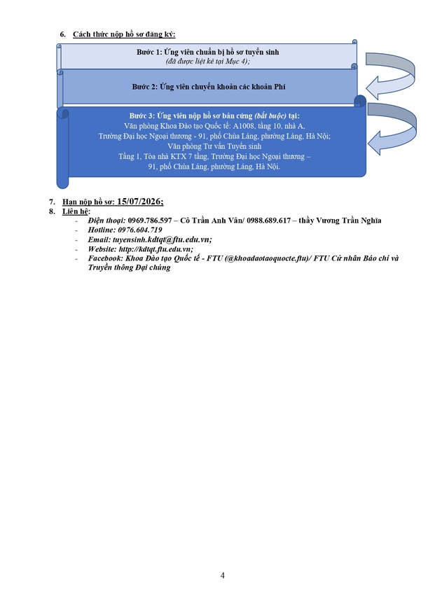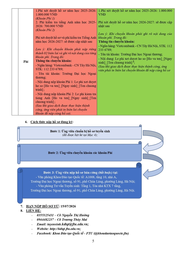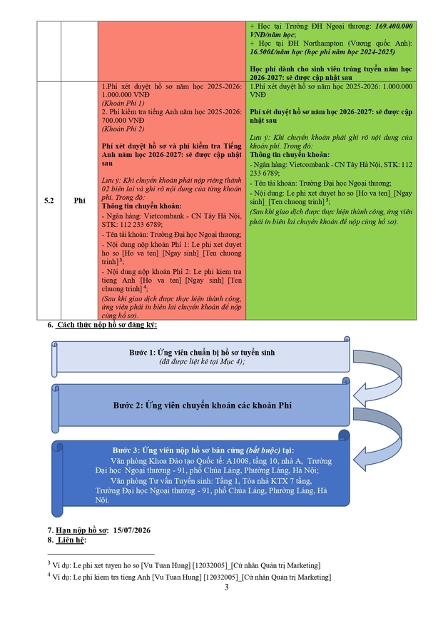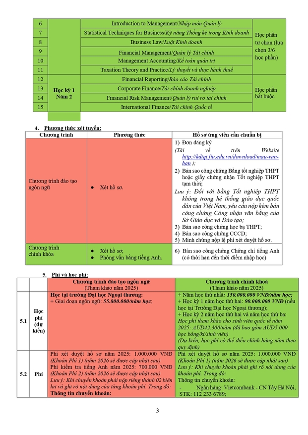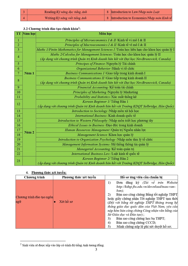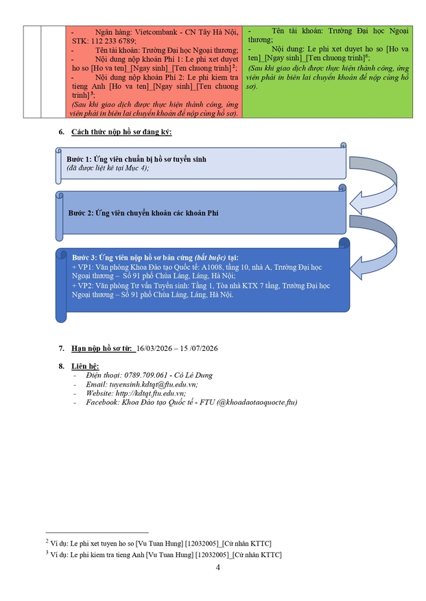 Văn phòng tuyển sinh 3: Ban Đào tạo Quốc tế - Phòng A007, tầng trệt nhà A - Trường ĐH Ngoại thương (cơ sở II tại Tp Hồ Chí Minh)