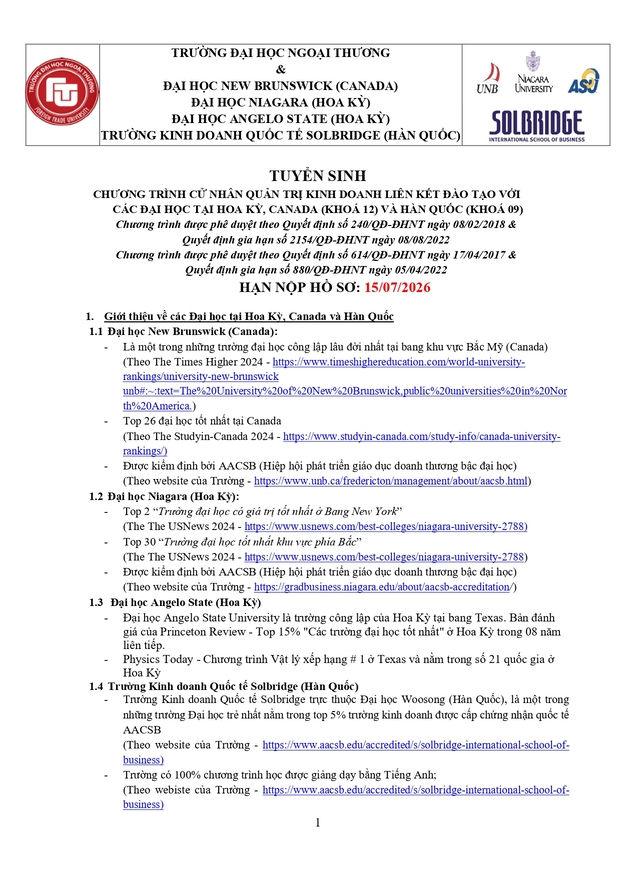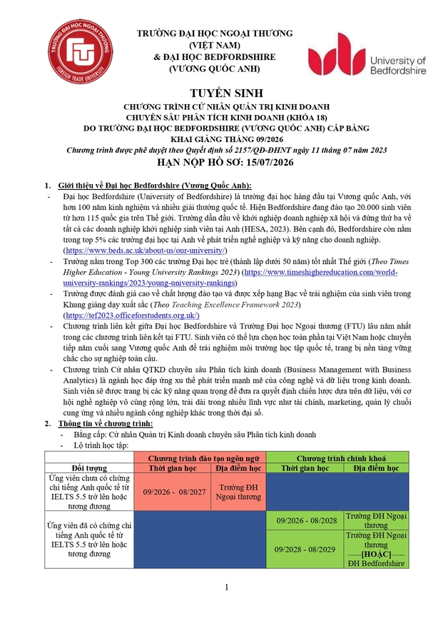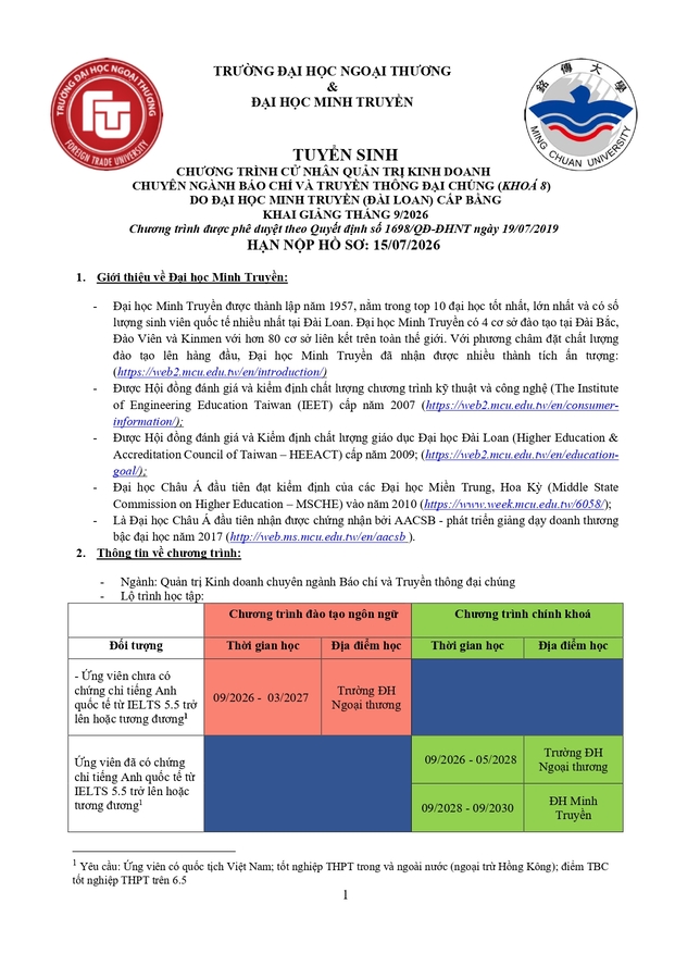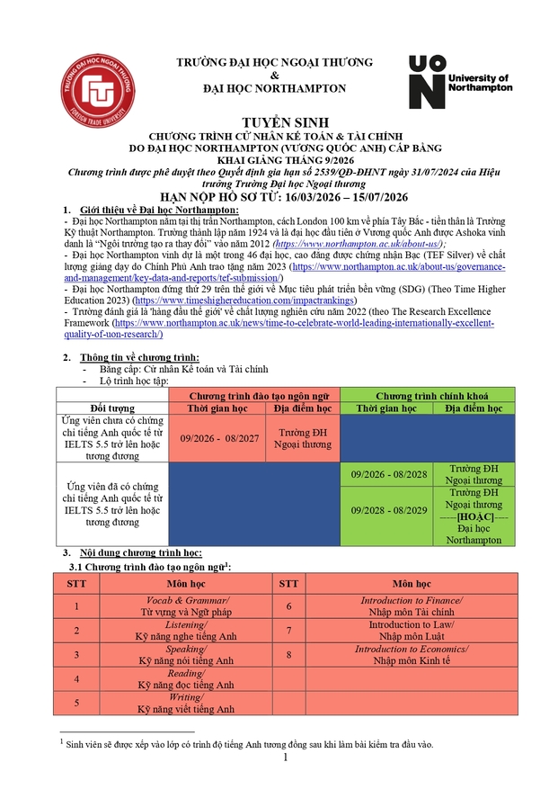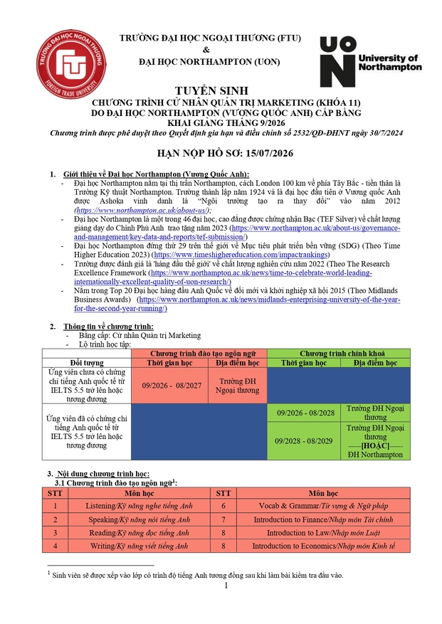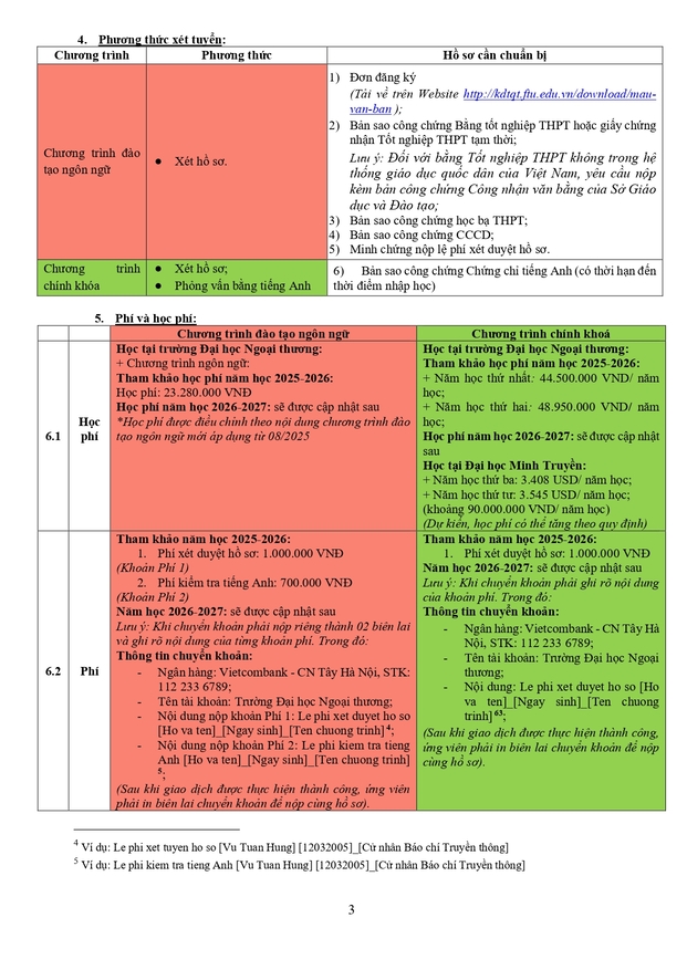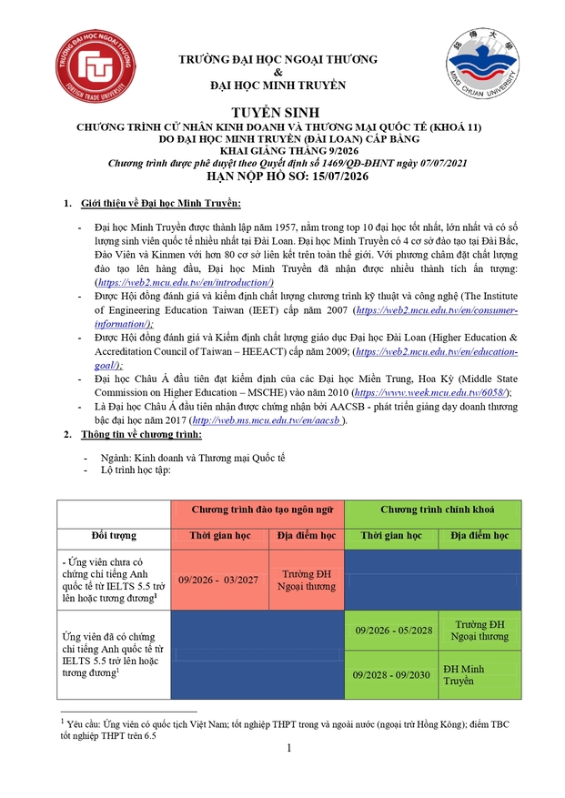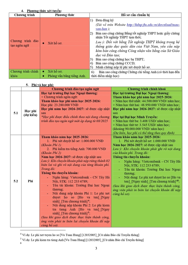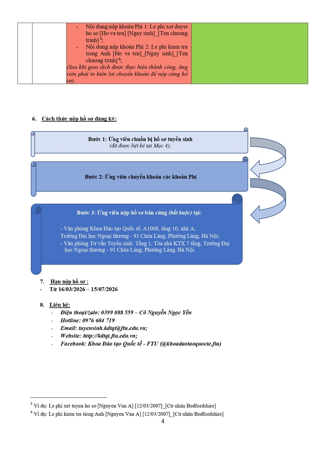 Văn phòng tuyển sinh 3: Ban Đào tạo Quốc tế - Phòng A007, tầng trệt nhà A - Trường ĐH Ngoại thương (cơ sở II tại Tp Hồ Chí Minh)