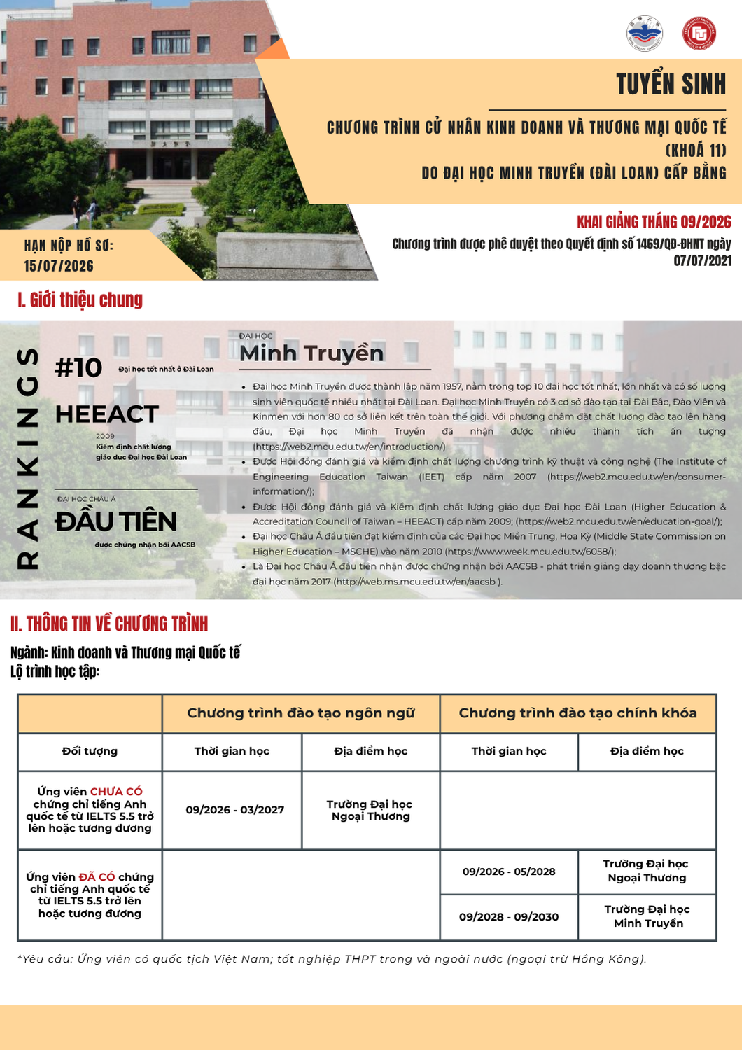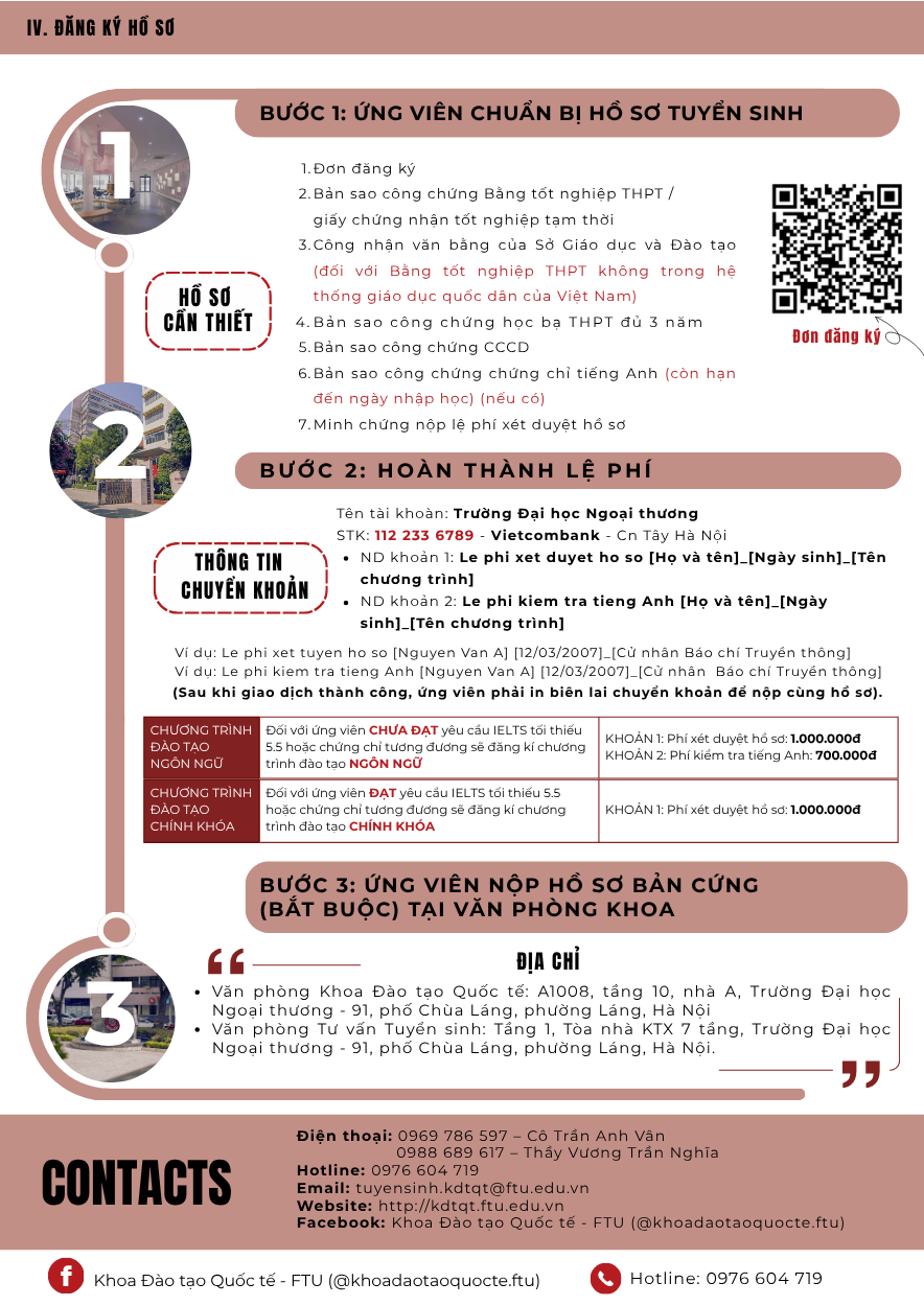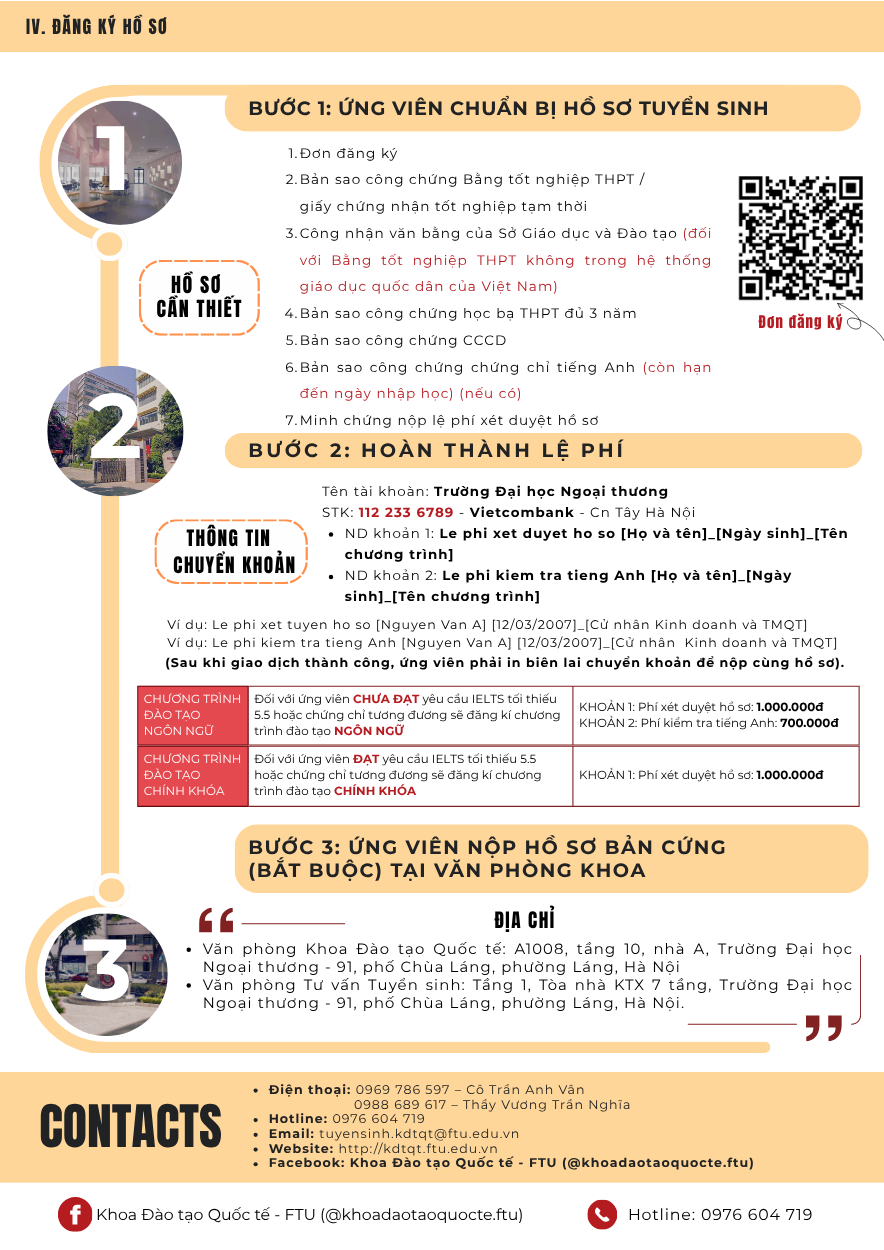 Văn phòng tuyển sinh 3: Ban Đào tạo Quốc tế - Phòng A007, tầng trệt nhà A - Trường ĐH Ngoại thương (cơ sở II tại Tp Hồ Chí Minh)